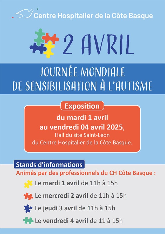 Dans le cadre de la journée mondiale de sensibilisation à l’autisme organisée chaque année le 2 avril, le service de pédopsychiatrie du Centre Hospitalier de la Côte Basque sous l’impulsion de son l’Hôpital de Jour La Passerelle, se mobilise pour mettre en place des actions de sensibilisation auprès du grand public entre le mardi 1er et le vendredi 4 avril