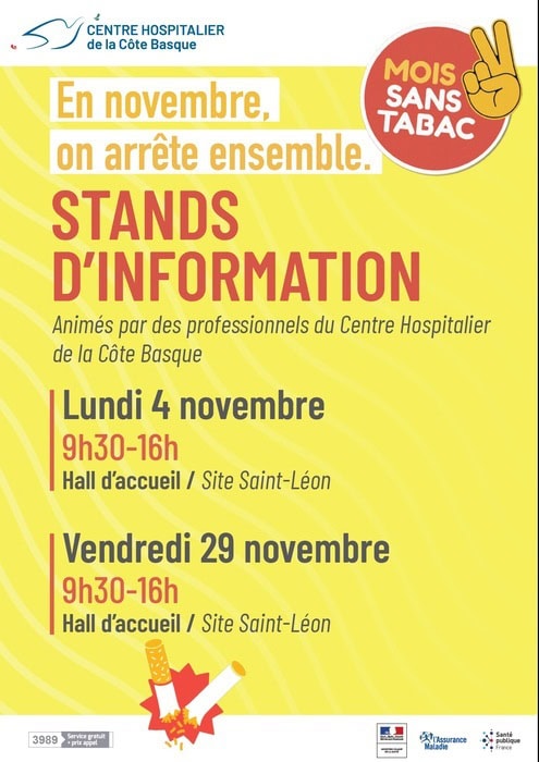 - Lundi 4 novembre 9h30-16h Centre Hospitalier de la Côte Basque.