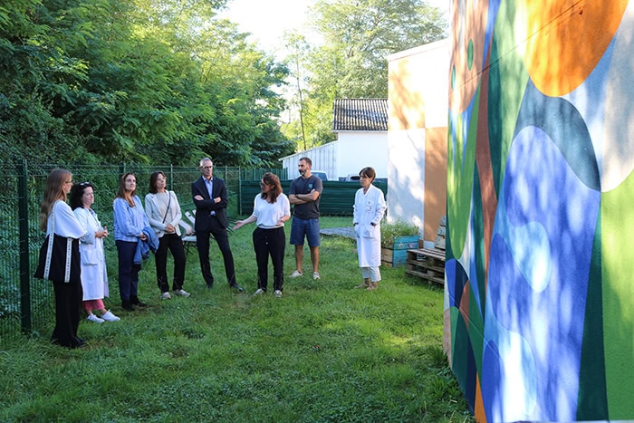 Cette date était en effet marquée à l’agenda de l’Hôpital de jour « l’Arc en Ciel » ; du service de pédopsychiatrie de cet établissement de santé, comme celle de la découverte de la nouvelle fresque murale réalisée collectivement au cours de l’été par Aude Samut, artiste. et l’association Kaxu Galerie à Bayonne, et par les enfants pris en charge dans la structure.