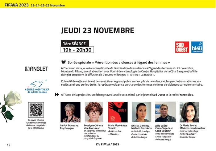 Dans le cadre de cette collaboration, les deux partenaires s’associent au Festival International du court-métrage (FIFAVA) d’Anglet pour proposer, à l’occasion de la journée internationale de lutte contre les violences faites aux femmes, un prochain rendez-vous sous forme d’une soirée spéciale “prévention des violences à l’égard des femmes”.