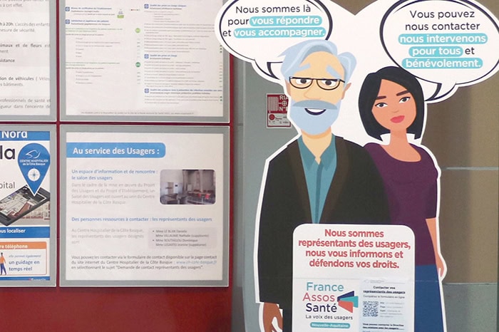 Relations avec les usagers : des silhouettes sur tous les sites du Centre Hospitalier de la Côte Basque pour rappeler les droits des usagers et fournir les contacts de leurs représentants
