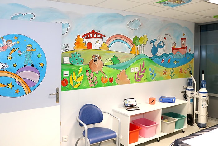 Afin d’améliorer cet accueil spécifique , un box dédié à ces jeunes patients a été créé. Ce dernier vient de bénéficier d’un « relooking » permettant de leur offrir un espace apaisant et adapté à leur jeune âge facilitant d’autant la prise en soins