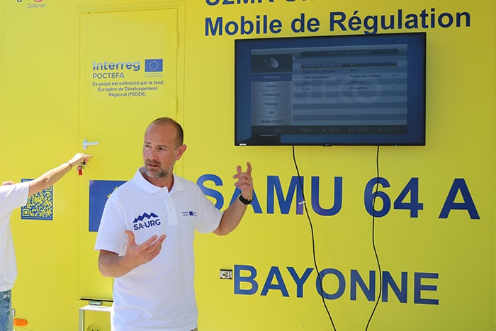 Elle a permis de montrer aux journalistes présents les réalisations concrètes engendrées par ces projets européens transfrontaliers avec la présentation de l’Unité Médicale Mobile de Réanimation (U2MR) porté par le Centre Hospitalier de la Côte Basque, ou le projet Hélinet dans les locaux du SAMU 64 A.