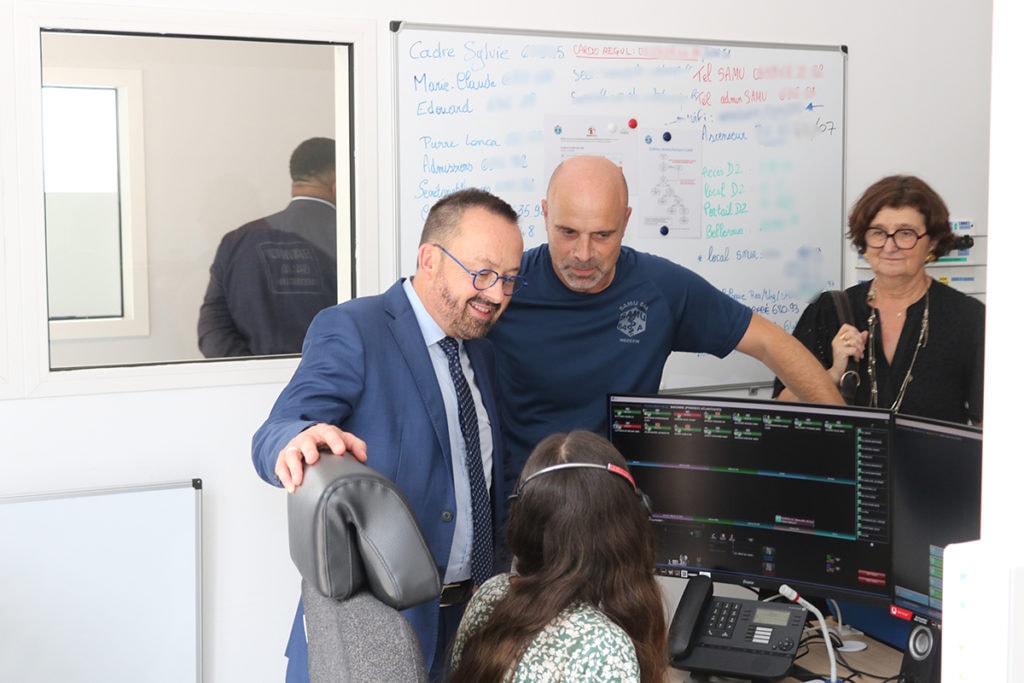 Il a ensuite échangé avec les professionnels du SAMU 64 A / SMUR dans la salle de régulation, aux côtés du Dr Edouard Gault.
