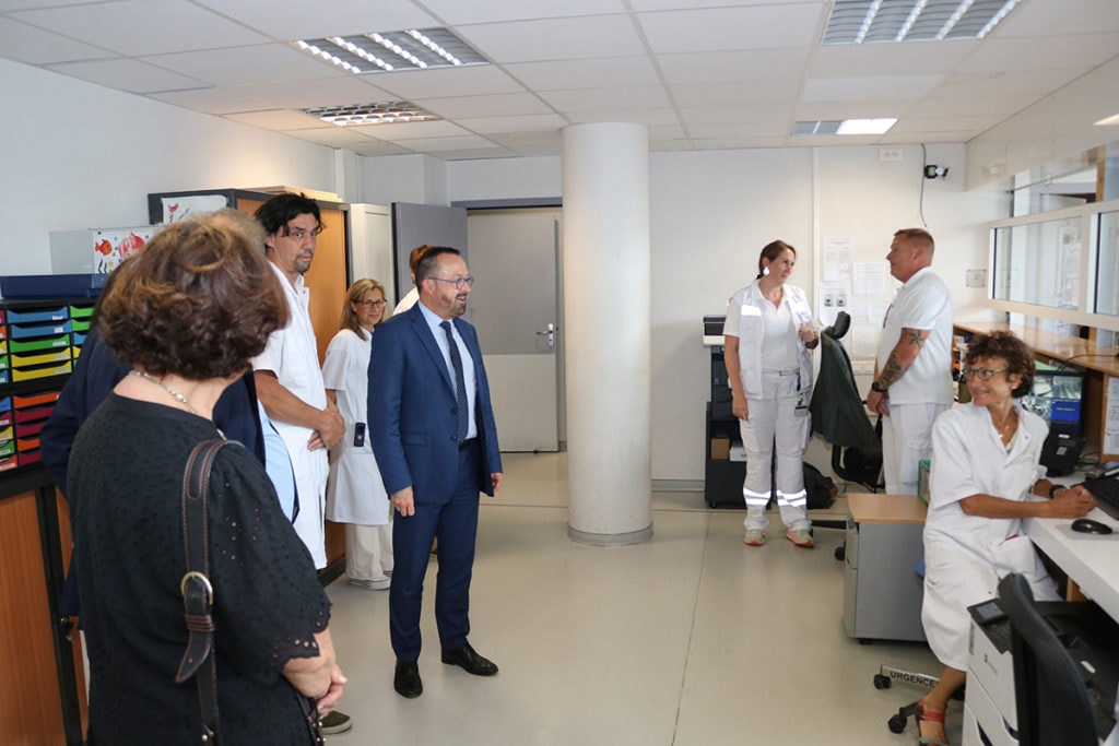 Une visite marquée par des échanges riches autour des enjeux d’organisation territoriale des soins et de l’engagement des professionnels de santé du service d’accueil des urgences des deux centres hospitaliers.