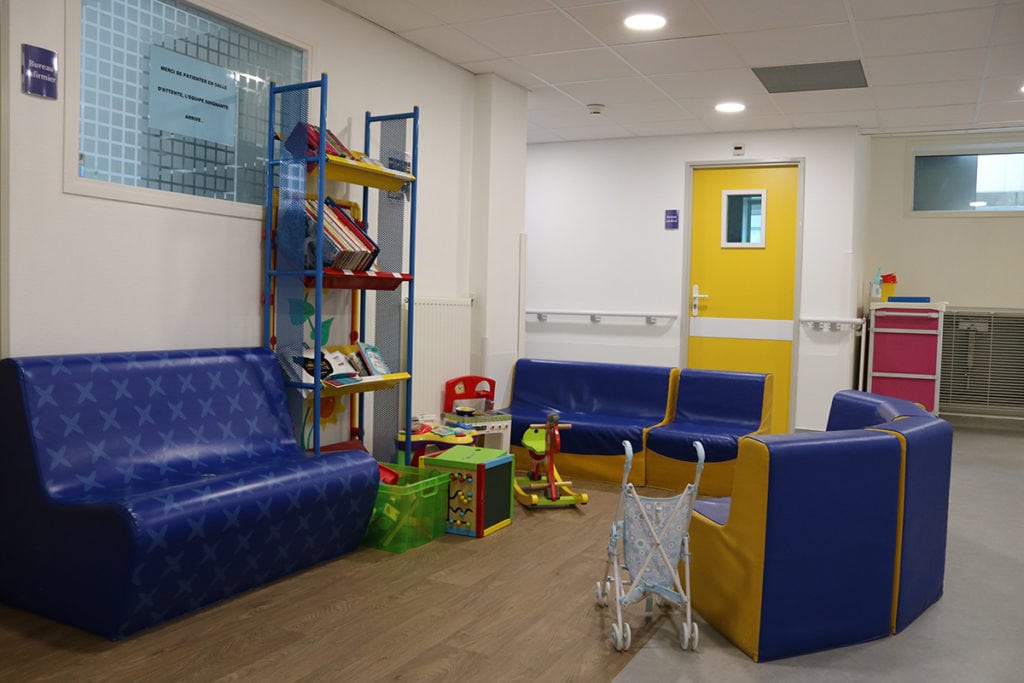 - La salle de jeux se trouve au deuxième étage du service de pédiatrie générale. Elle est ouverte en permanence, sous la responsabilité de l’éducatrice de jeunes enfants ou du personnel soignant. Vous y trouverez jeux de société, puzzles, trotteurs, dînette, ordinateur, dessin, peinture, bibliothèque…