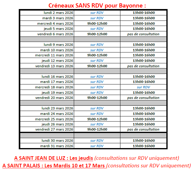Prise de RDV par téléphone : 05 59 44 32 98.