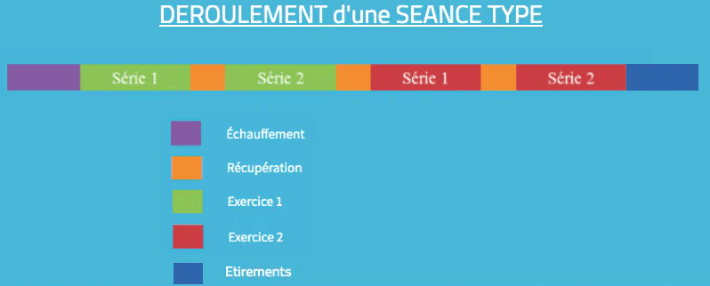 Concernant les exercices, le nombre de répétitions et de séries est ici donné à titre indicatif, ces valeurs peuvent être modifiées en fonction de votre ressenti et de vos possibilités.