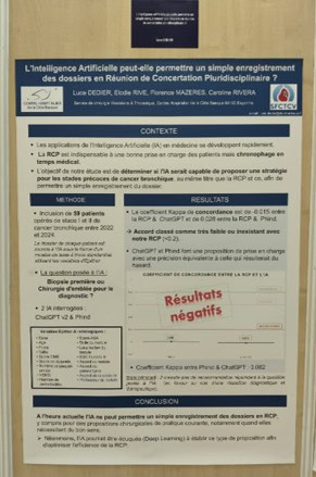 –« Analyse de la sécurité du patient pendant les opérations de chirurgie thoracique mini-invasive » – La sécurité du patient est notre priorité. Dans ce travail, nous avons collaboré avec d’autres centres, à analyser la survenue d’éventuels incidents au cours de la prise en charge des patients opérés de chirurgie thoracique en France. L’objectif est d’apprendre de ce qui ne s’est pas déroulé comme attendu afin de progresser et de s’améliorer pour les futurs patients.